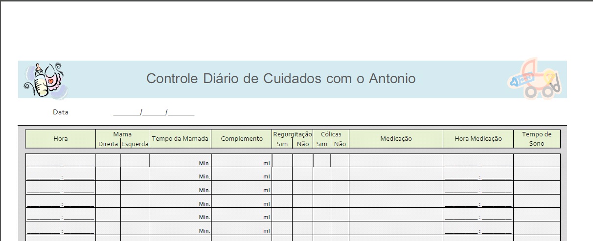 Exemplo de planilha de controle de temperatura.