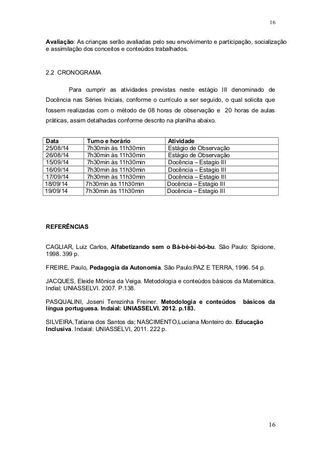 Modelo Projeto De Estagio Uniasselvi Estagio Em Educacao