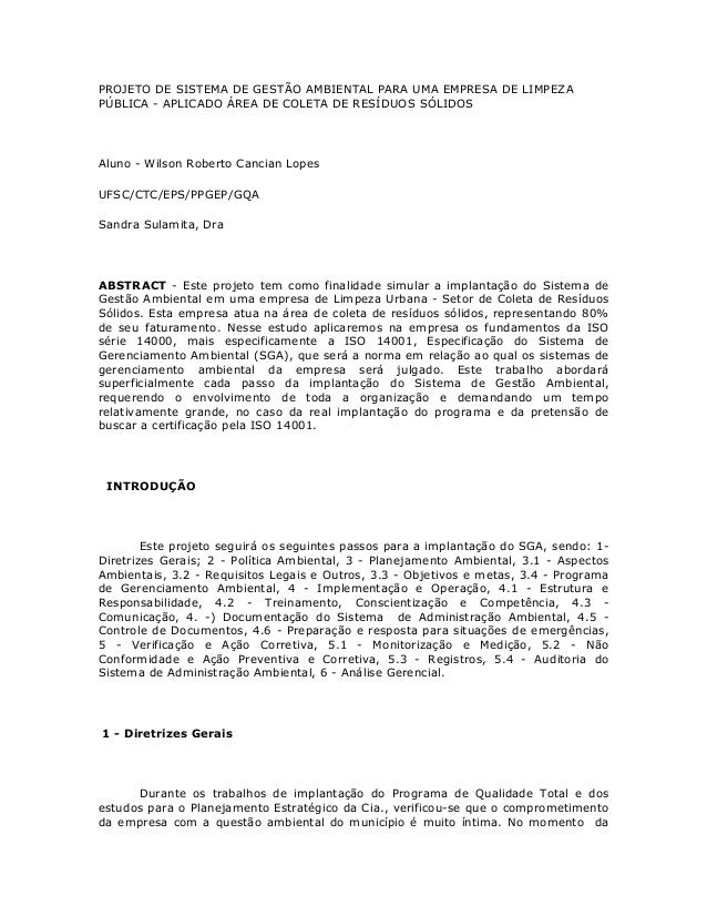 Projeto De Sistema De Gestao Ambiental Para Uma Empresa De Limpeza P