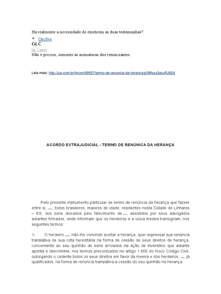 Revisamos sobre Exemplo De Termo De Renuncia De Herança.