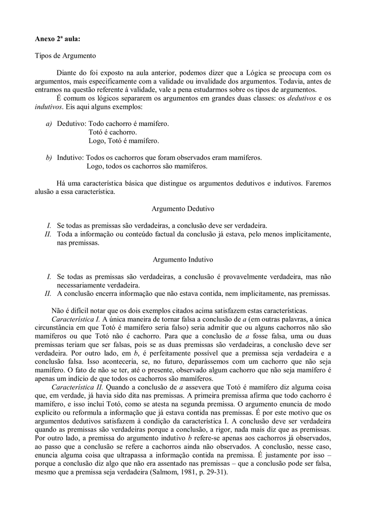 Anexo 2ª Aula Tipos De Argumento Diante Do Foi Exposto Na