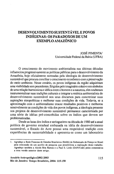 Pdf Desenvolvimento Sustentavel E Povos Indigenas Os Paradoxos