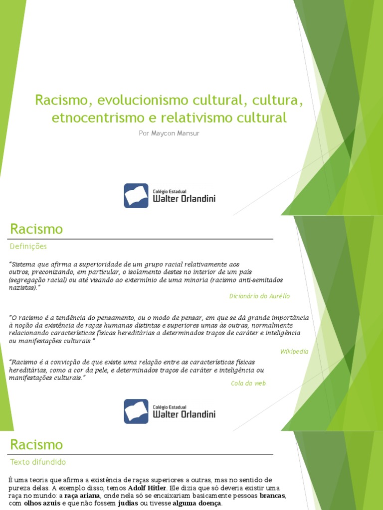 Racismo Evolucionismo Cultural Cultura Etnocentrismo Maycon