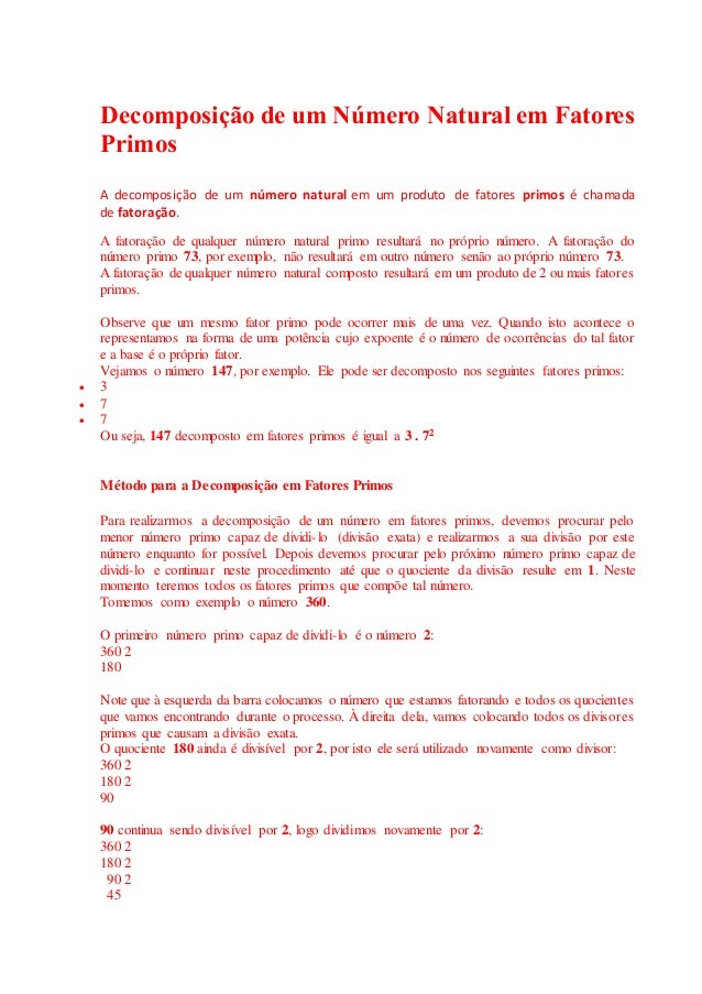 Decomposicao De Um Numero Natural Em Fatores Primos Alunos