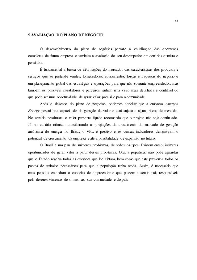 Dados completos sobre Avaliação Do Plano De Negócio Exemplo.