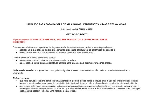 Sintese Do Texto Um Passo Para Fora Da Sala De Aula