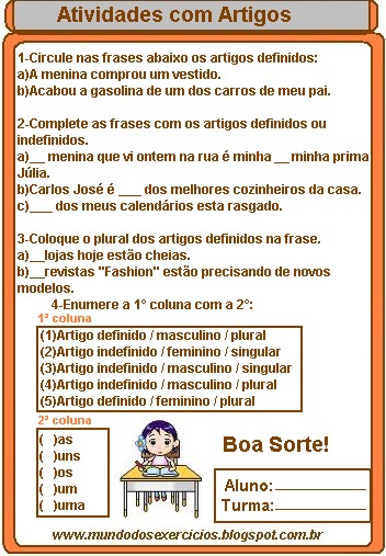 Atividades De Artigos Definidos E Indefinidos Para Imprimir
