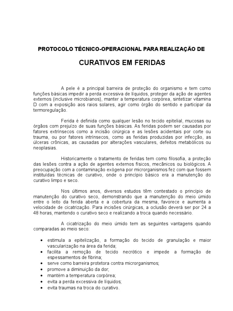 Protocolo Para Curativo Em Ferida Simples Desinfetante Infeccao