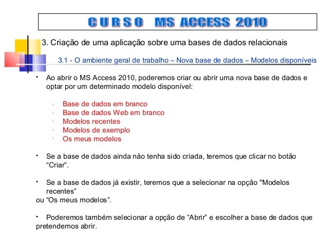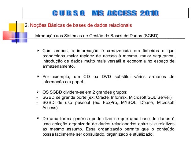 Microsoft Access Aula 1 Introducao Ao Microsoft Access Ppt