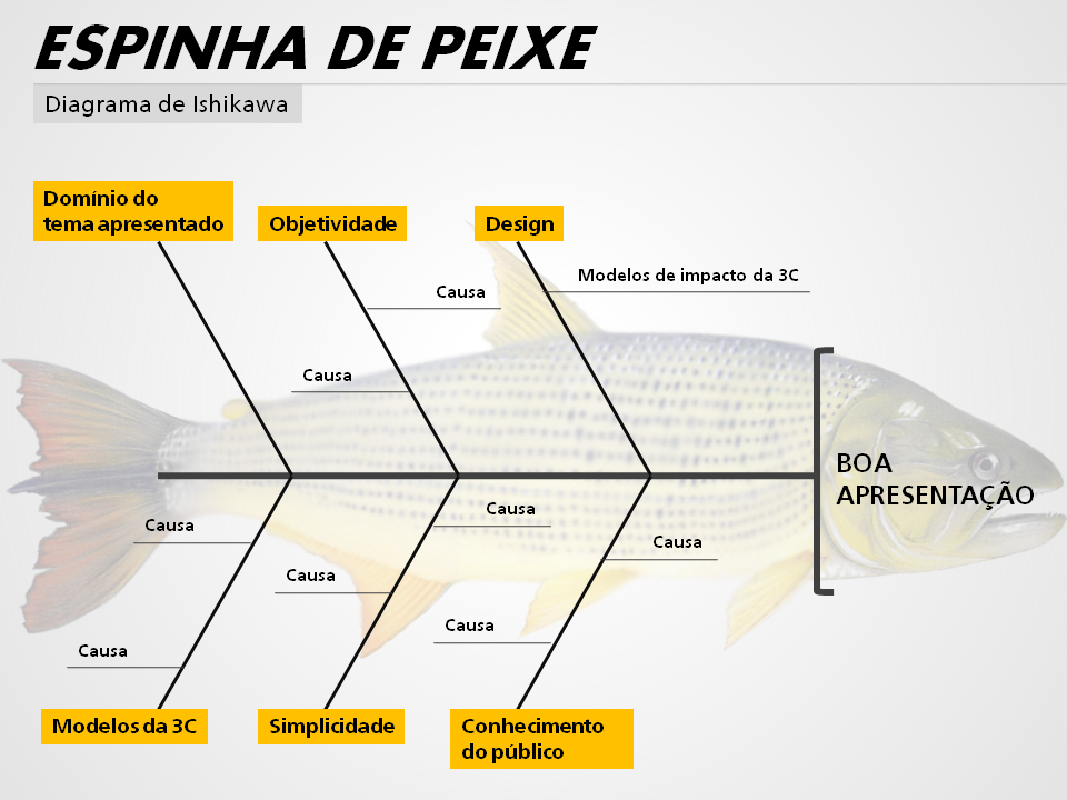 Outras formas conhecidas do diagrama de ishikawa são causa e efeito e espinha de peixe que também têm explicações plausíveis para essas nomenclaturas.