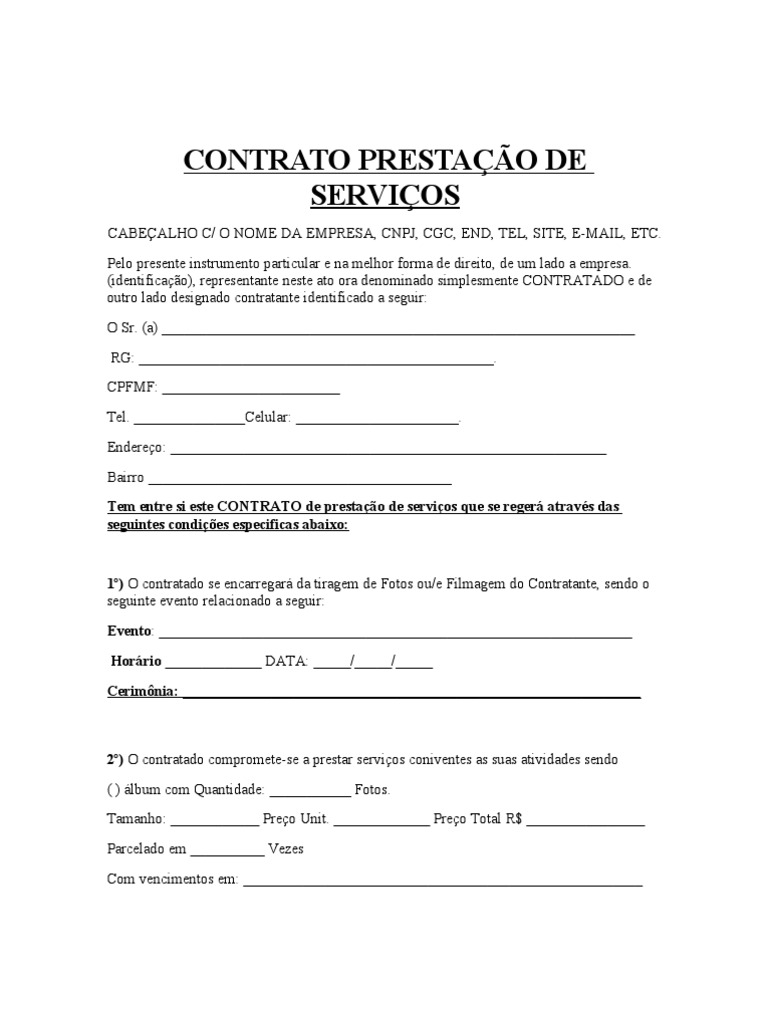 Aqui estão fotos sobre Exemplo De Contrato De Prestação De Serviço Simples.