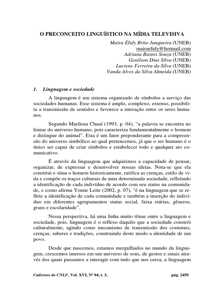 O Preconceito Linguistico Na Midia Televisiva Pdf Download Gratis