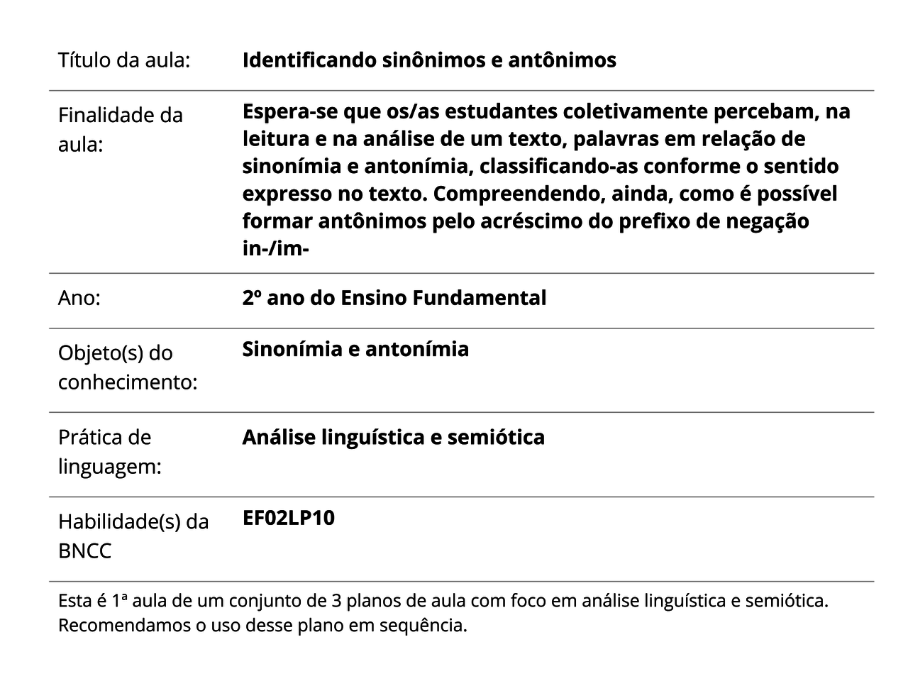 Plano De Aula 2º Ano Lingua Portuguesa Identificando