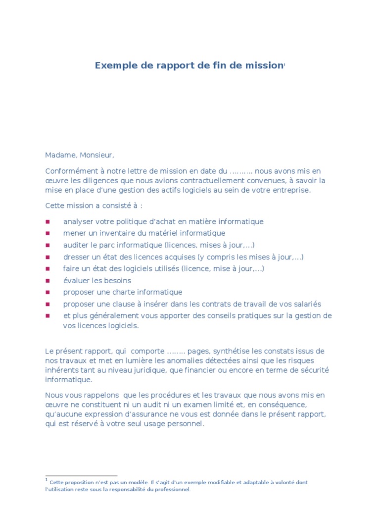 Exemple Rapport Fin Mission Informatique Logiciel Essai