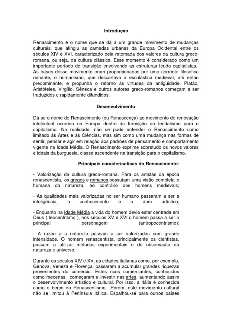 Renascimento Trabalho Escrito Renascimento Idade Media