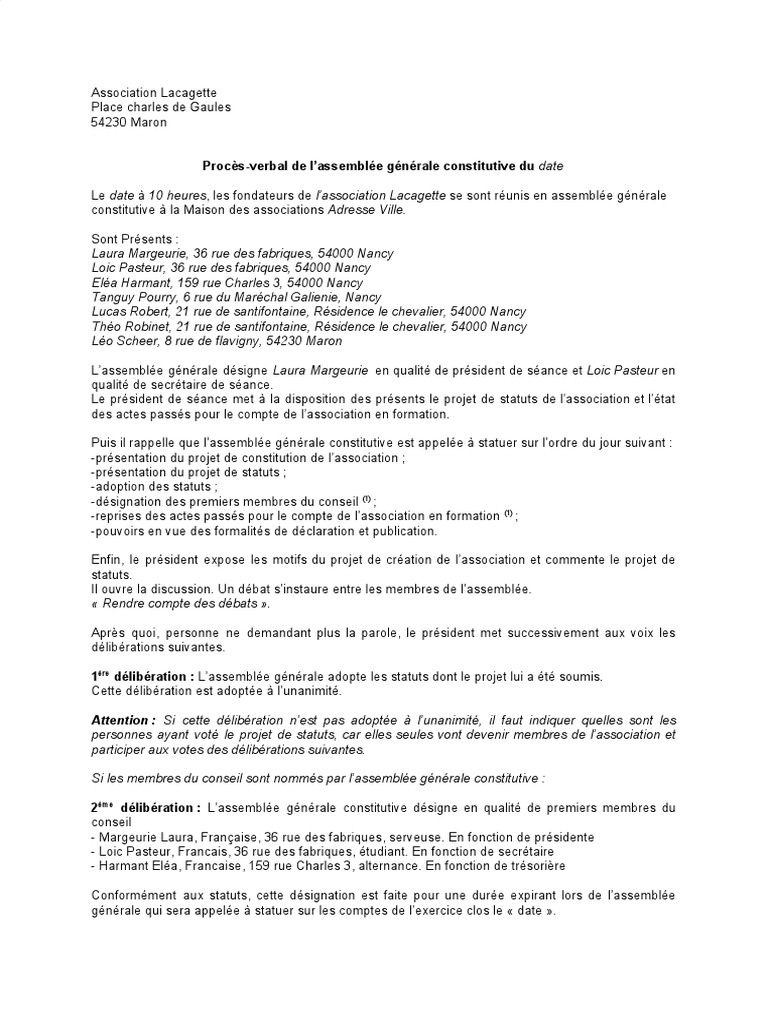 Exemple De Proces Verbal D Ag Constitutive De L Association