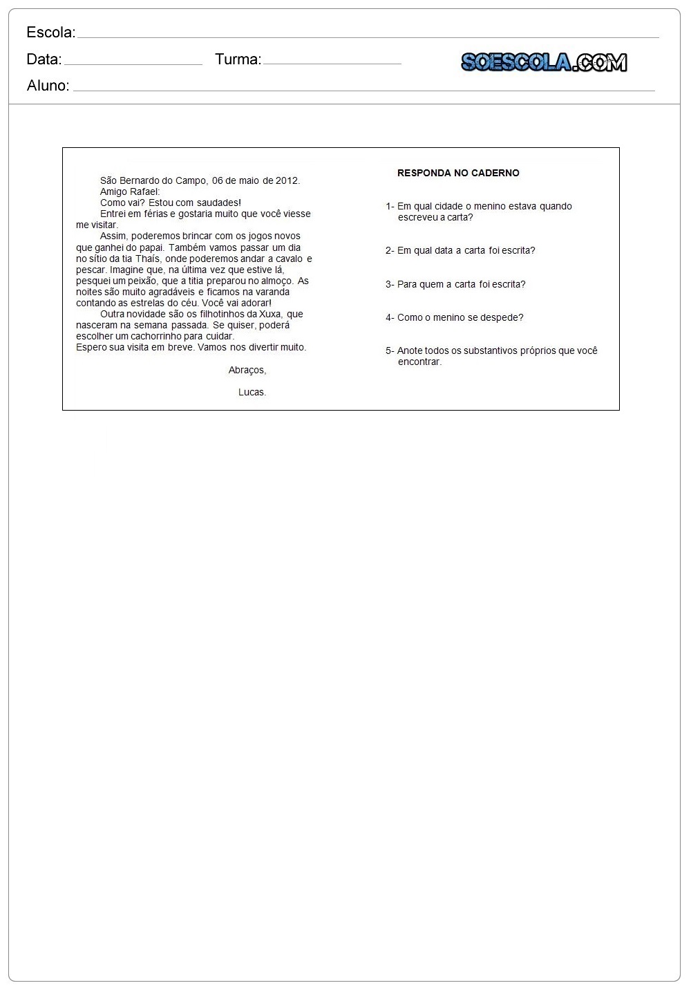 Plano De Aula 3º Ano Lingua Portuguesa Cartas Do Leitor