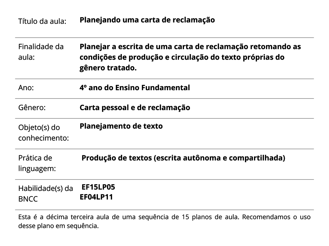 Plano De Aula 4º Ano Lingua Portuguesa Planejando Uma Carta
