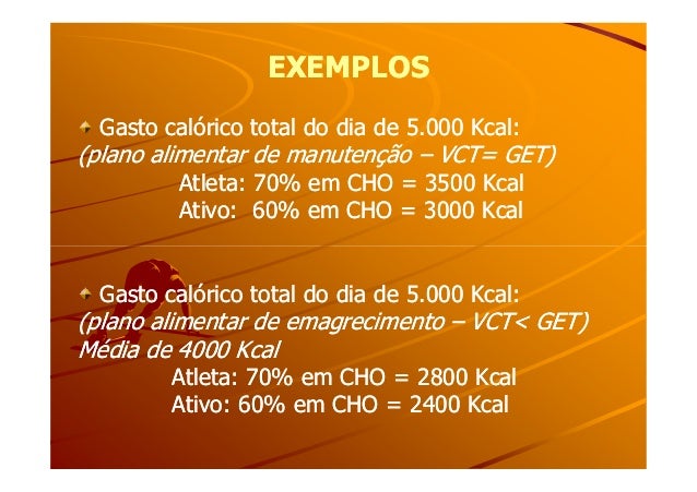 Por exemplo quando a ingestão de energia é de 4000 5000 kcald 1 uma dieta contendo 50 de energia proveniente de hidratos de carbono fornecerá 500 600 g de hidratos de carbono ou.