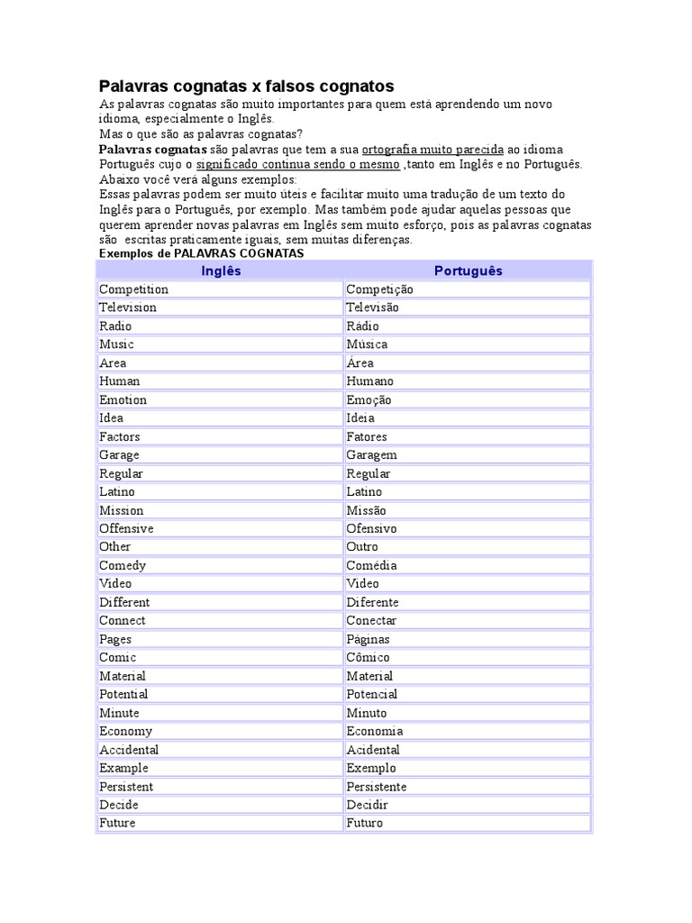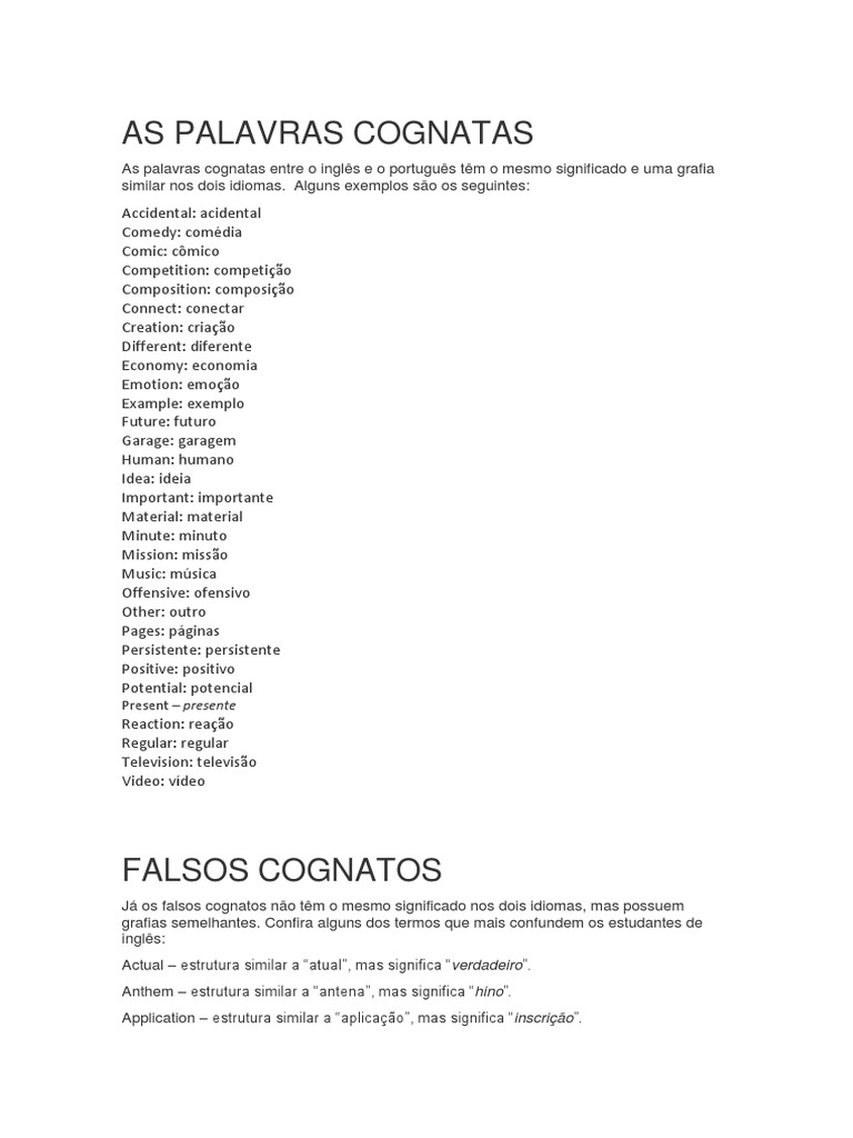 Cognatos Palavras De Duplo Sentido E Falsos Cognatos Pdf