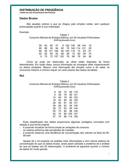 1 Estatistica Descritiva Distribuicao De Frequencia V Discreta E C