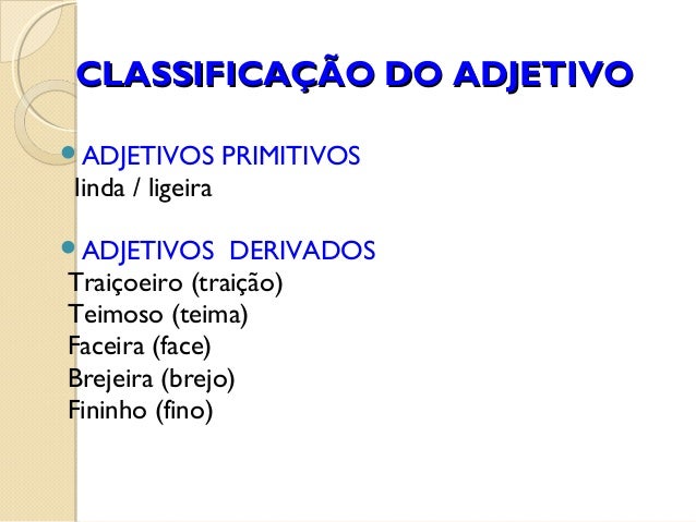 Adjetivos Definicao Classificacao Primitivos E Derivados Ppt