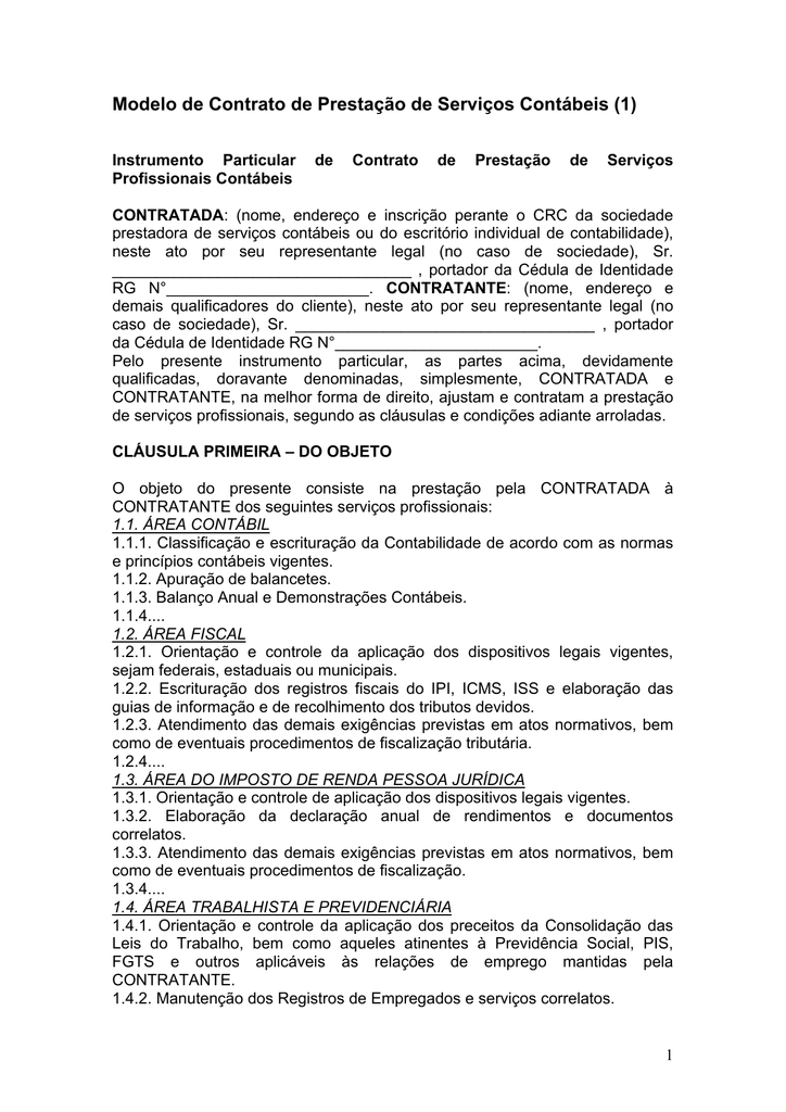 Modelo De Contrato De Prestacao De Servicos Contabeis 1 Crc
