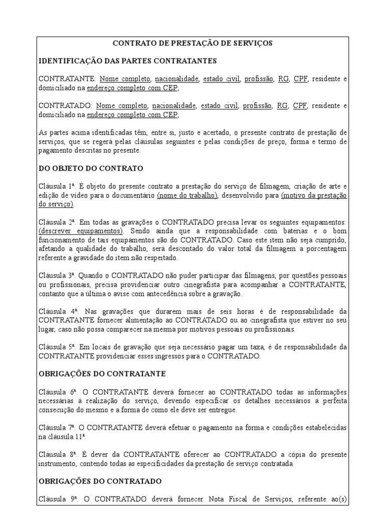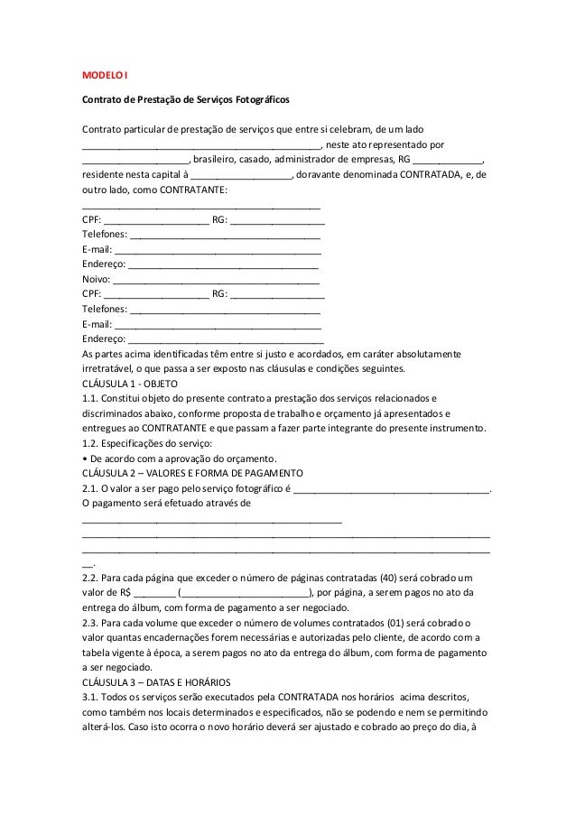 Modelos De Contrato De Prestacao De Servicos Fotograficos