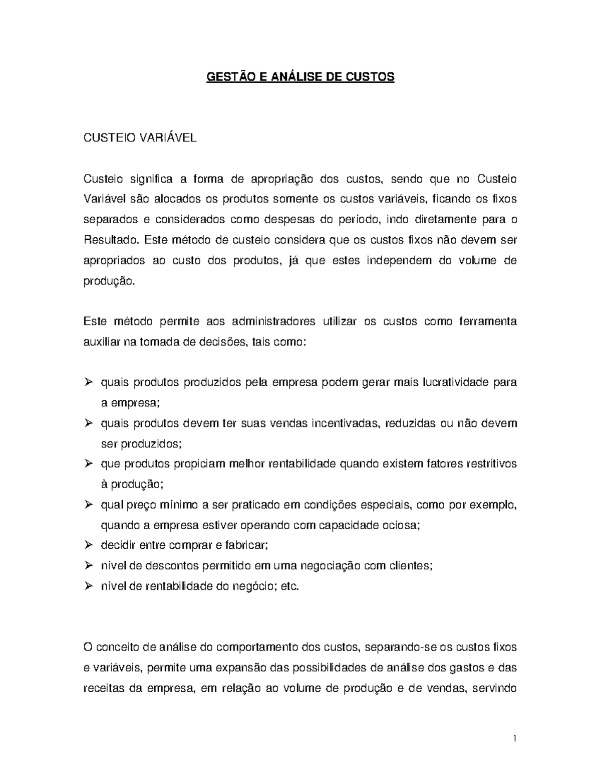 Gastos Variaveis Fixos E Semivariaveis Conhecimentos