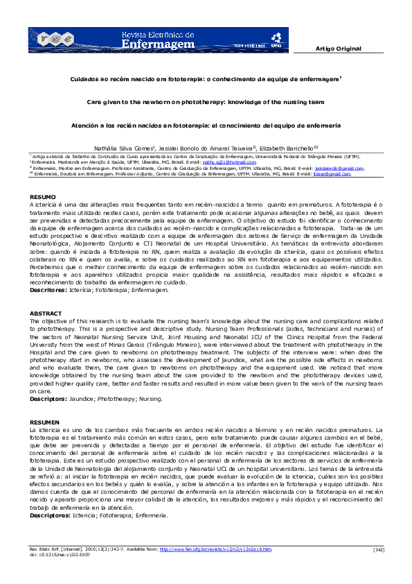 Pdf Cuidados Ao Recem Nascido Em Fototerapia O Conhecimento Da