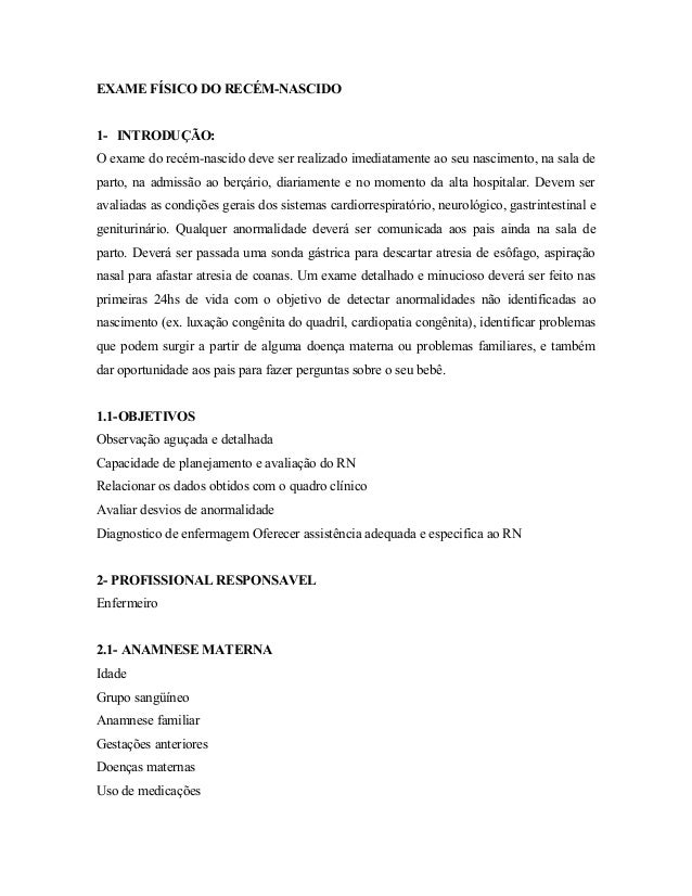 Exame Fisico Do Rn Auxiliar O Enfermeiro No Roteiro Do Exame