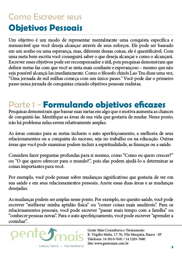 Isso é o que você está procurando Exemplos De Metas E Objetivos Pessoais.