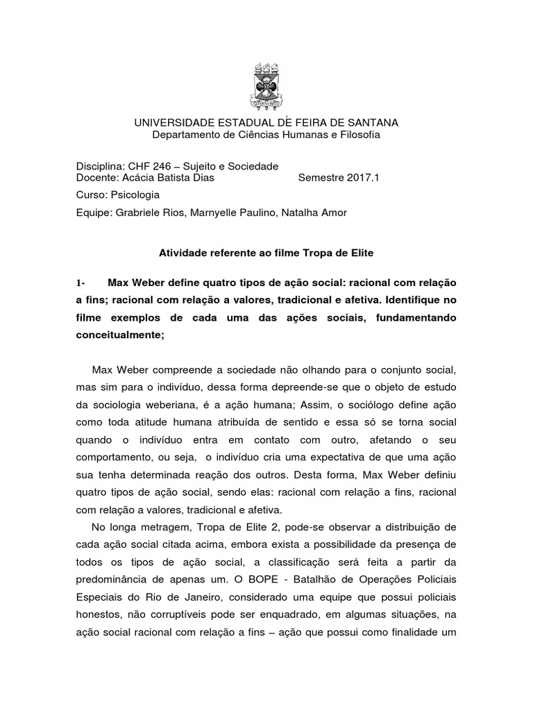 Resenha Filme Tropa De Elite Max Weber Sociologia