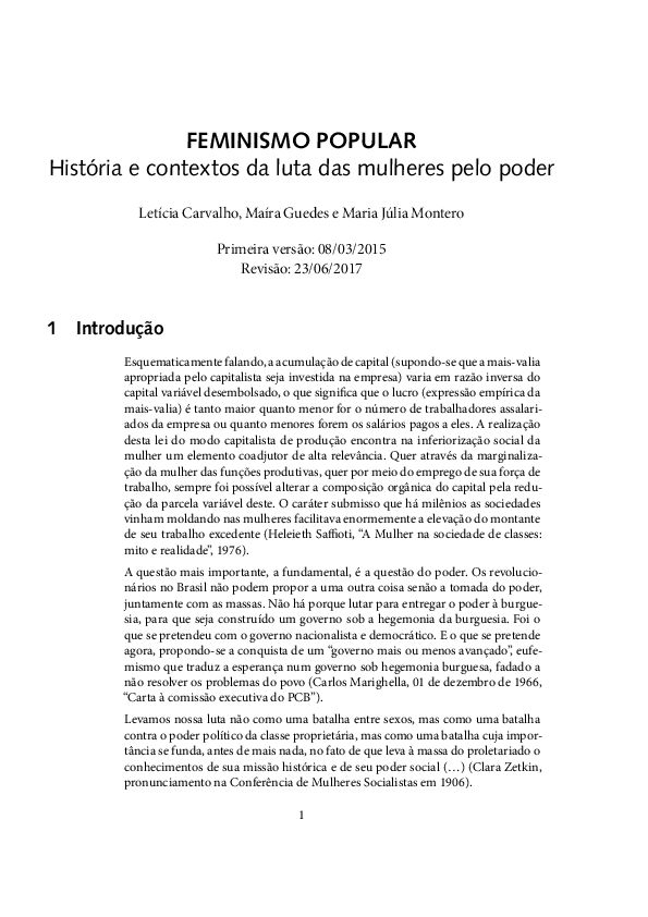 Pdf Feminismo Popular Historia E Contextos Da Luta Das Mulheres