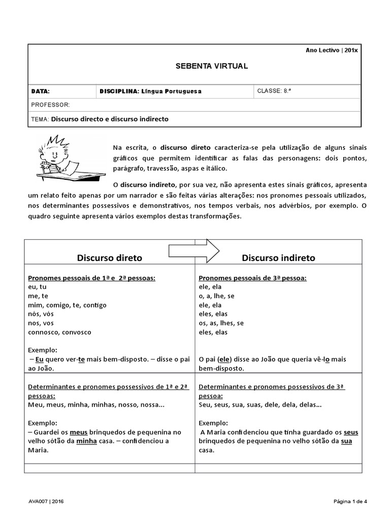 Sebenta Virtual Discurso Direto E Indireto Docx Pronome
