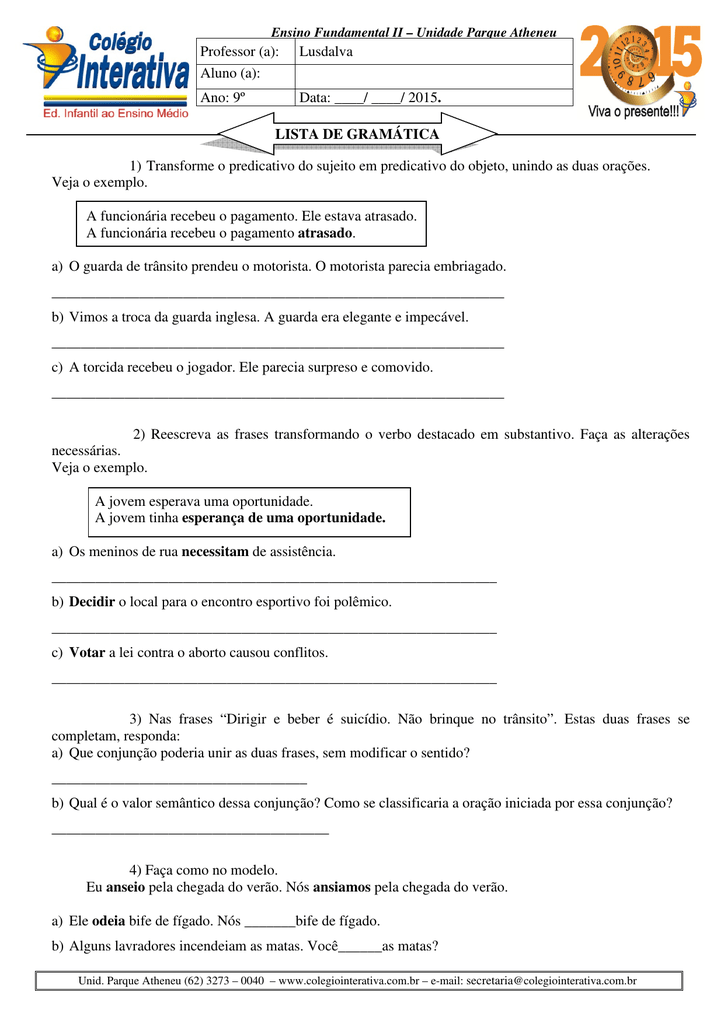 1 Transforme O Predicativo Do Sujeito Em Predicativo Do Objeto