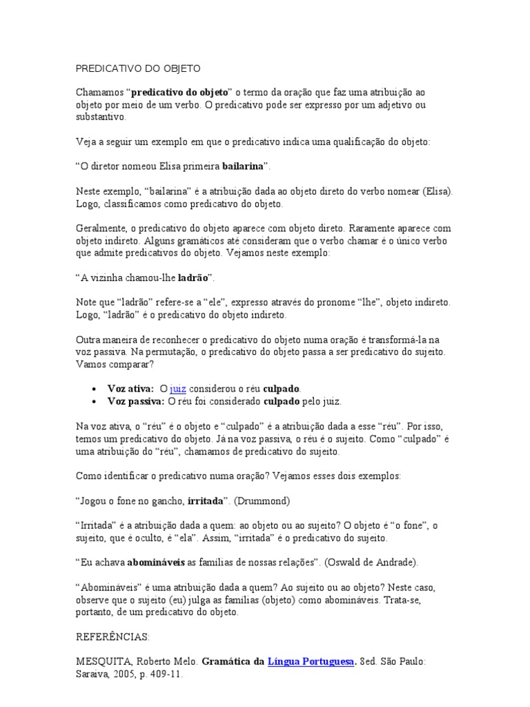 Predicativo Do Objeto Assunto Gramatica Predicado Gramatica