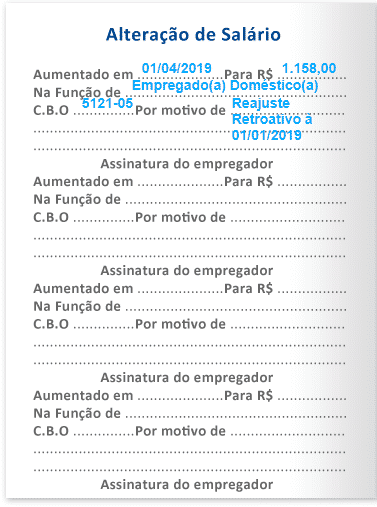 No caso de alterações salariais há um local exclusivo para isso denominado alterações salariais onde deve constar.