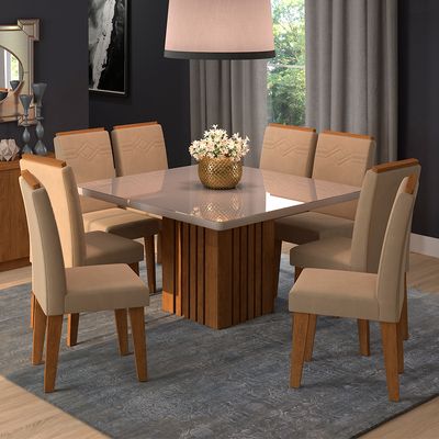 Conjunto De Mesa Ana Com 8 Cadeiras Tais Cimol Savana Off White