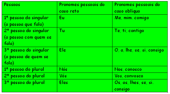 Exemplos De Pronomes Pessoais Do Caso Reto