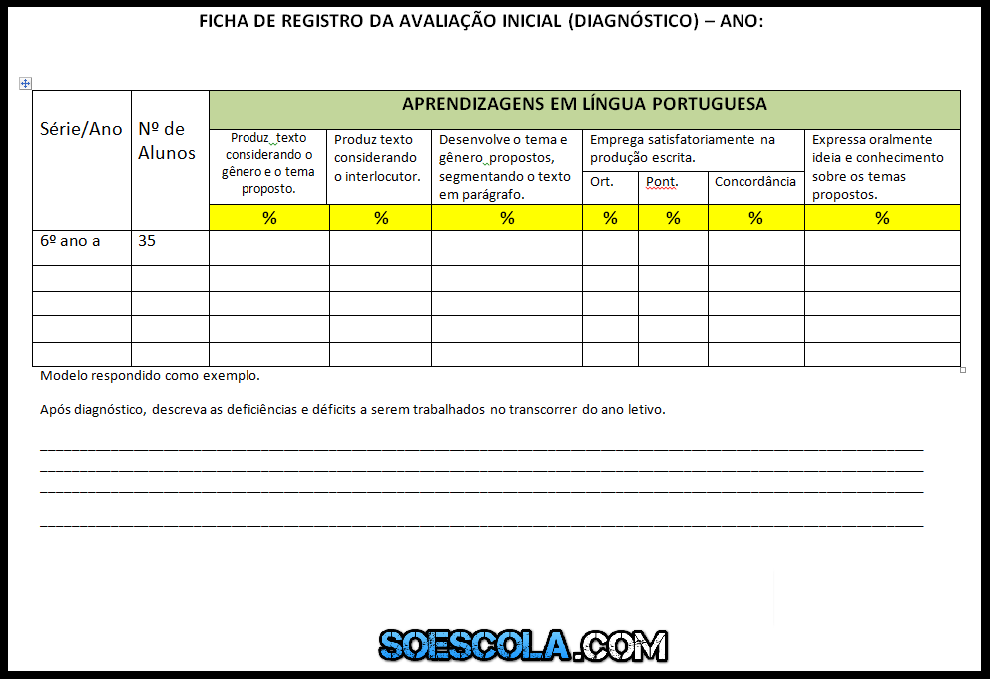Modelo De Ficha Para Diagnostico Inicial Da Turma So Escola