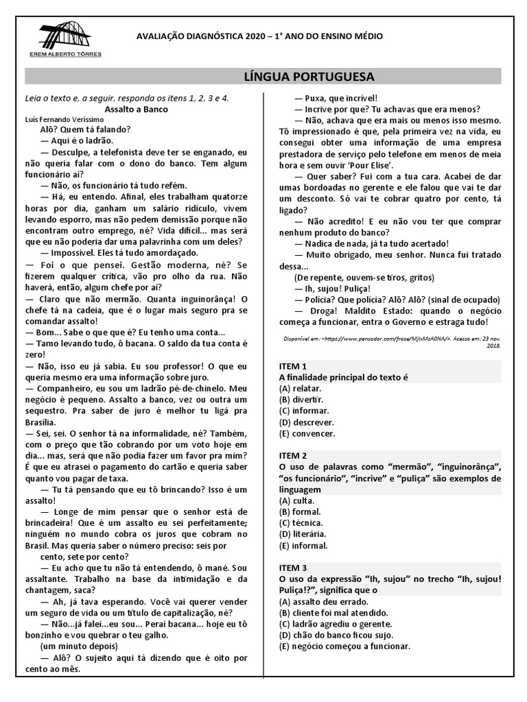 Essa é a informação que podemos descrever sobre exemplo de avaliação diagnóstica ensino médio. Obrigado por visitar o blog Novo Exemplo 05 January 2019.