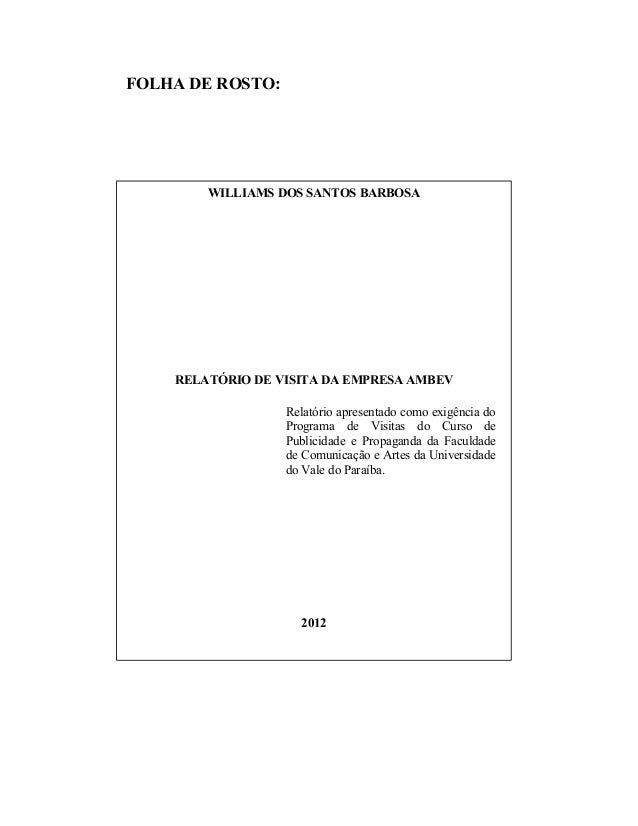 Exemplo De Relatorio De Visita Tecnica Abnt