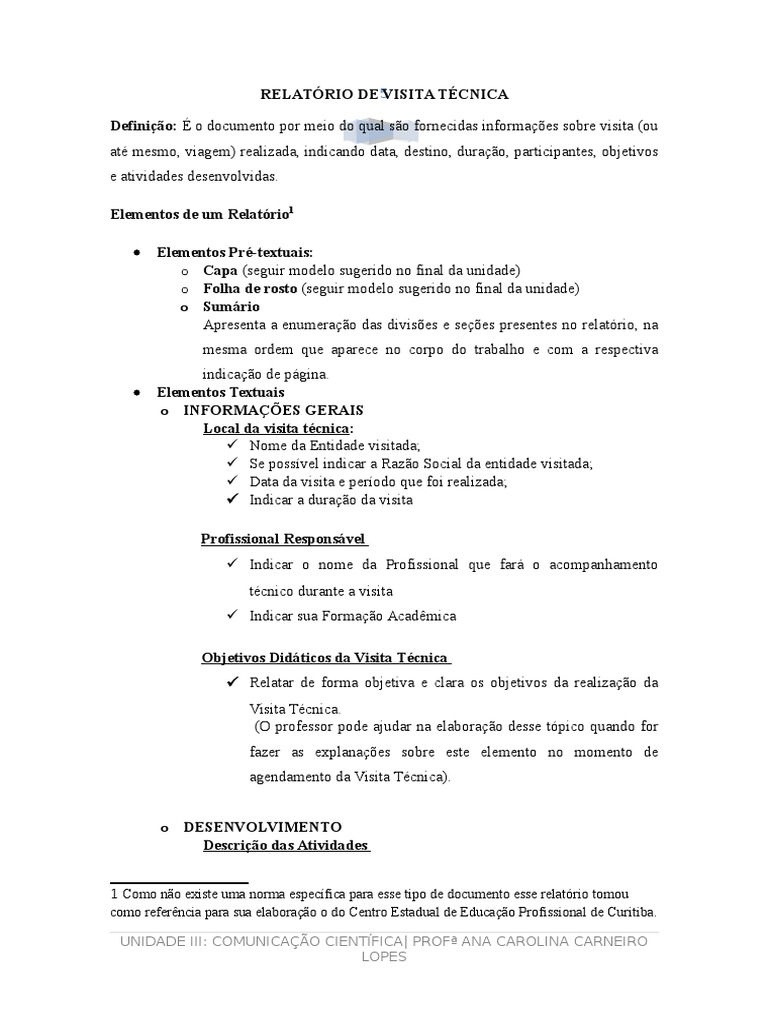 Isso é o que você está procurando Exemplo De Relatorio De Visita Tecnica Abnt.