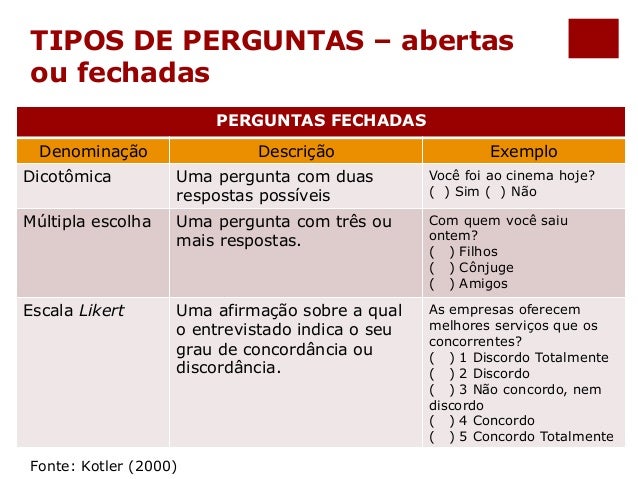 Veja abaixo alguns dos tipos de perguntas mais comuns e como eles podem ser usados para criar uma ótima pesquisa.