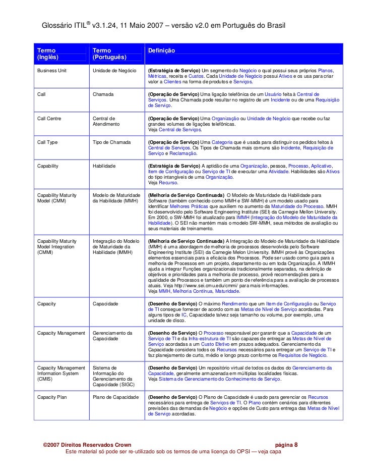 Glossario Itil V3 Em Portuges