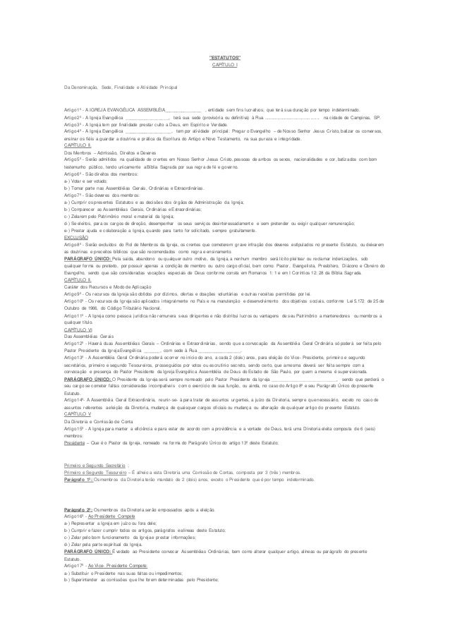Ata De Criacao Do Estatuto Social Da Igreja Evangelica Assembleia
