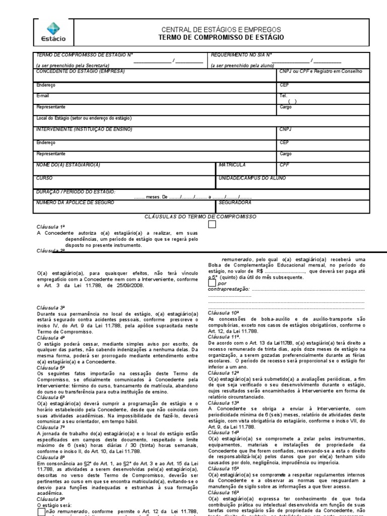 Exemplo De Termo De Compromisso De Estagio Preenchido Uninter