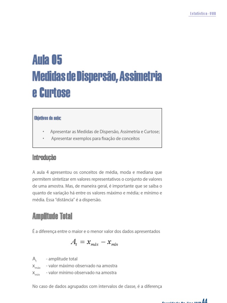 Dispersao Assimetria E Curtose Desvio Padrao Variacao