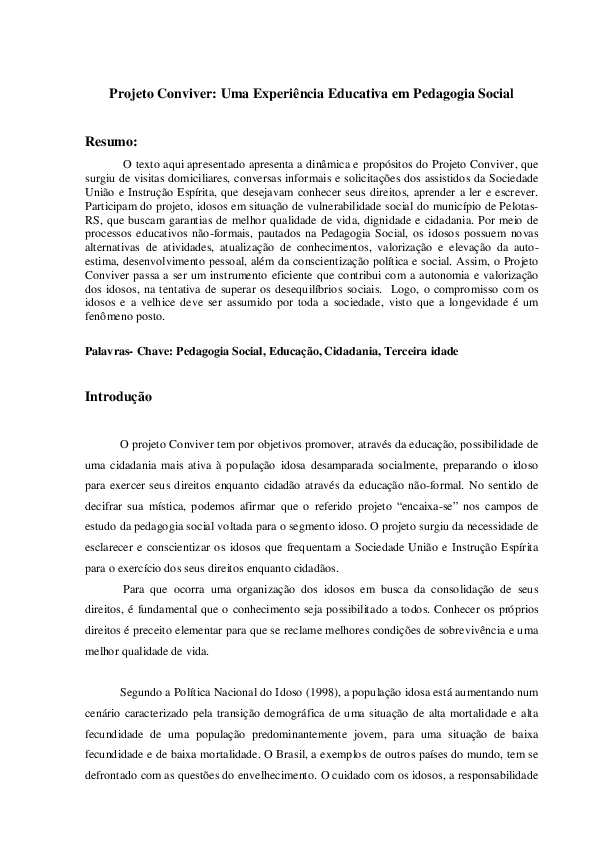 Pdf Projeto Conviver Uma Experiencia Educativa Em Pedagogia